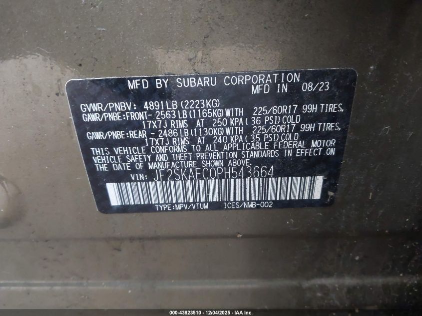 2023 SUBARU FORESTER 2023 року Бензин, 2.5, Полный привод, vin - JF2SKAEC0PH543664 из США