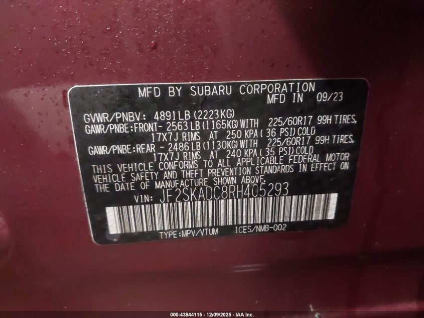 2024 SUBARU FORESTER 2024 року Бензин, 2.5, Полный привод, vin - JF2SKADC8RH405293 из США