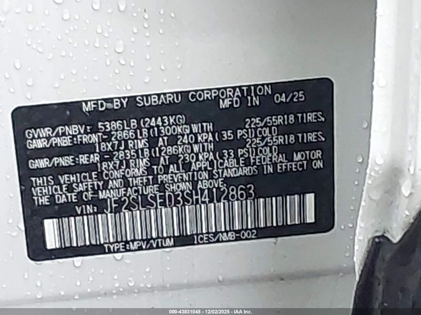 2025 SUBARU FORESTER 2025 року Гибрид, 2.5, Полный привод, vin - JF2SLSED3SH412863 из США