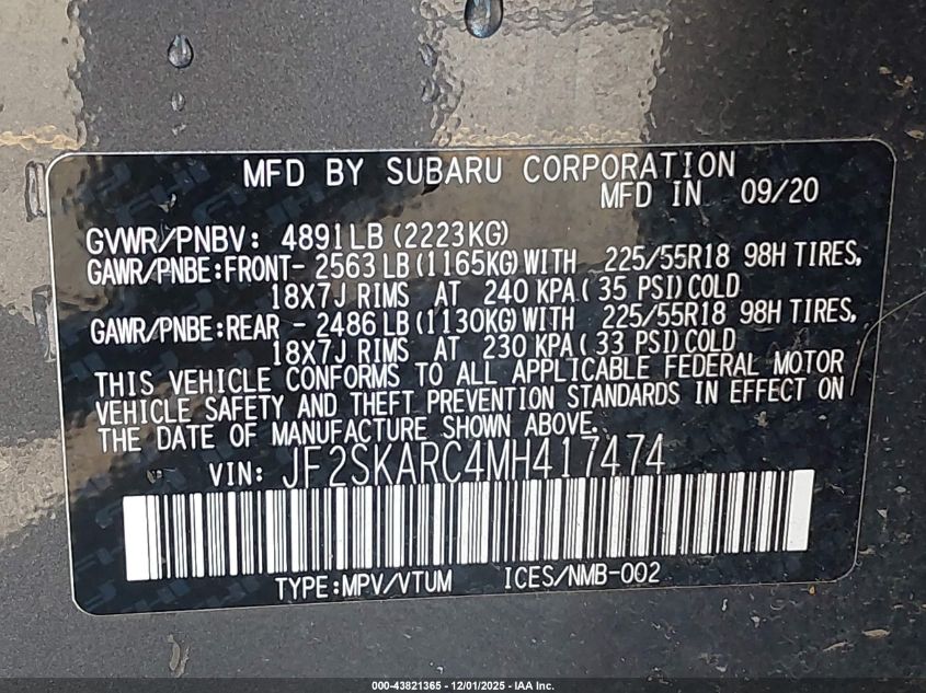 2021 SUBARU FORESTER 2021 року Бензин, 2.5, Полный привод, vin - JF2SKARC4MH417474 из США