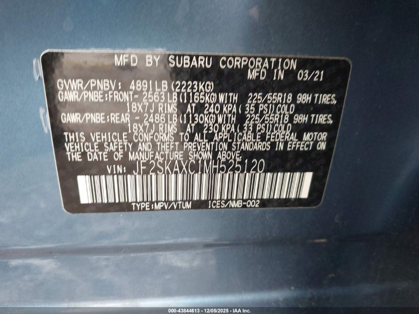 2021 SUBARU FORESTER 2021 року Бензин, 2.5, Полный привод, vin - JF2SKAXC1MH525120 из США