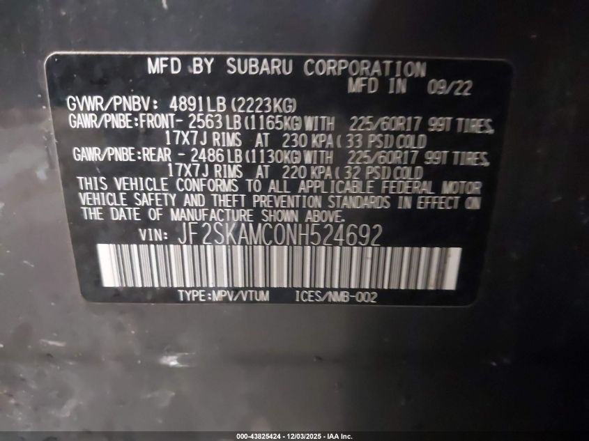 2022 SUBARU FORESTER 2022 року Бензин, 2.5, Полный привод, vin - JF2SKAMC0NH524692 из США