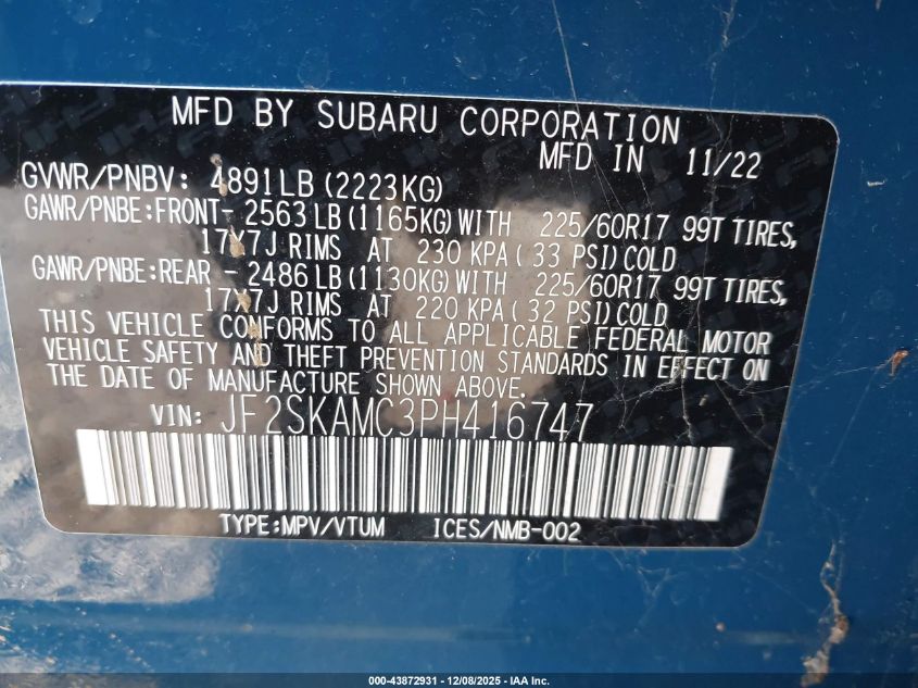 2023 SUBARU FORESTER 2023 року Бензин, 2.5, Полный привод, vin - JF2SKAMC3PH416747 из США