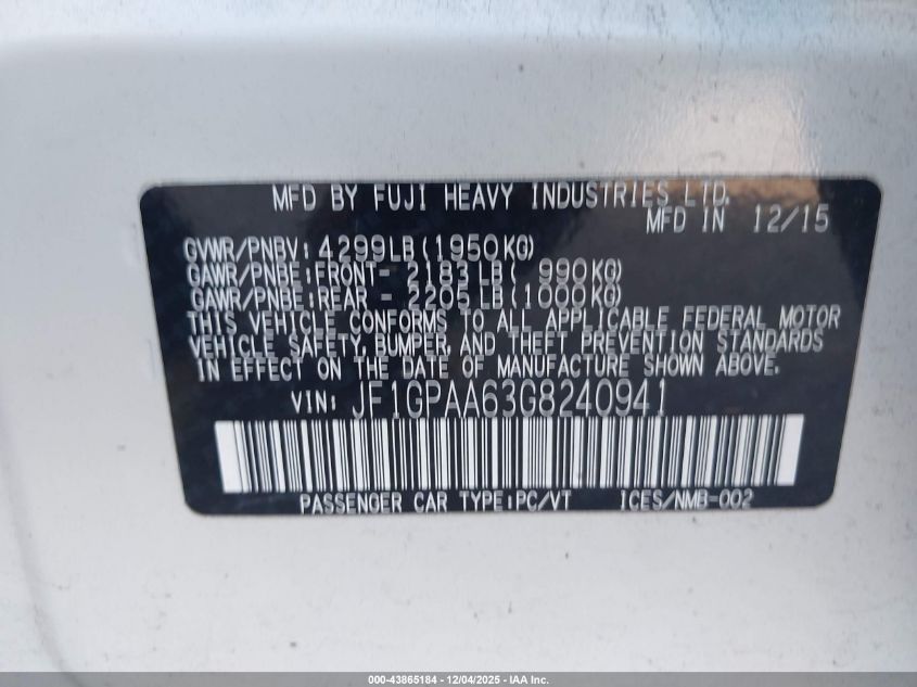 2016 SUBARU IMPREZA 2016 року Бензин, 2.0, Полный привод, vin - JF1GPAA63G8240941 из США