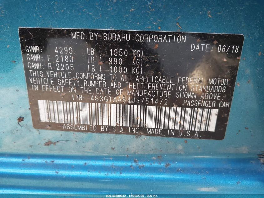 2018 SUBARU IMPREZA 2018 року Бензин, 2.0, Полный привод, vin - 4S3GTAA64J3751472 из США