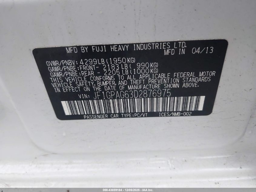 2013 SUBARU IMPREZA 2013 року Бензин, 2.0, Полный привод, vin - JF1GPAG63D2876975 из США