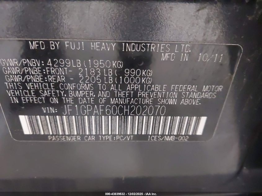 2012 SUBARU IMPREZA 2012 року Бензин, 2.0, Полный привод, vin - JF1GPAF60CH202070 из США