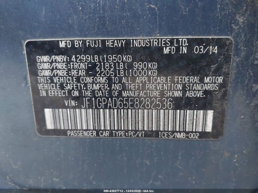 2014 SUBARU IMPREZA 2014 року Бензин, 2.0, Полный привод, vin - JF1GPAD65E8282536 из США