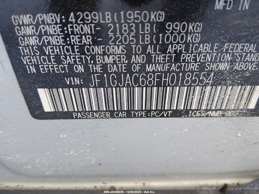 2015 SUBARU IMPREZA 2015 року Бензин, 2.0, Полный привод, vin - JF1GJAC68FH018554 из США