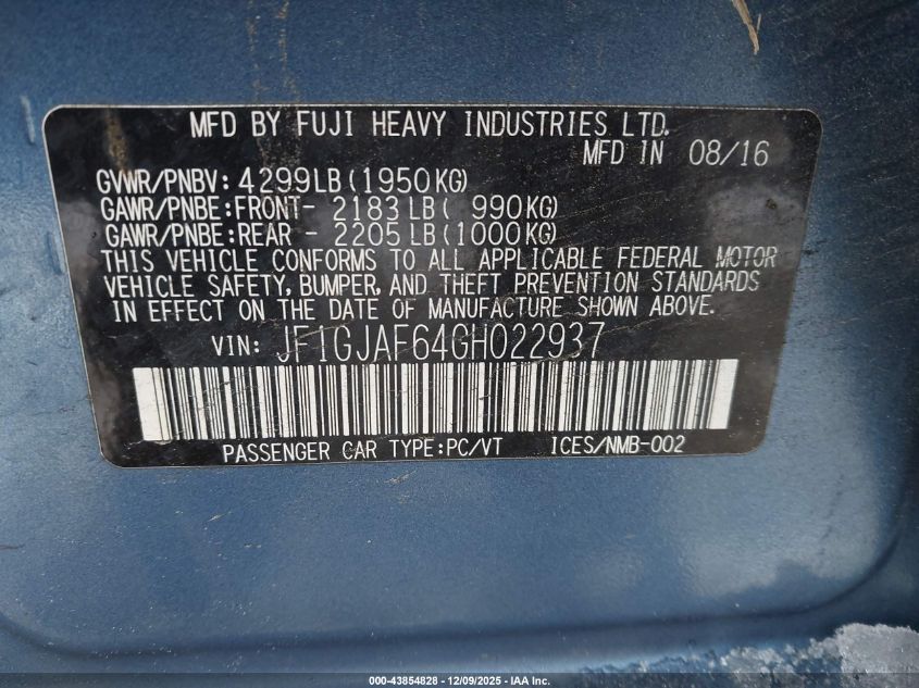 2016 SUBARU IMPREZA 2016 року Бензин, 2.0, Полный привод, vin - JF1GJAF64GH022937 из США