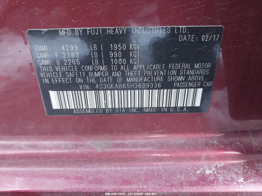 2017 SUBARU IMPREZA 2017 року Бензин, 2.0, Полный привод, vin - 4S3GKAB65H3609336 из США