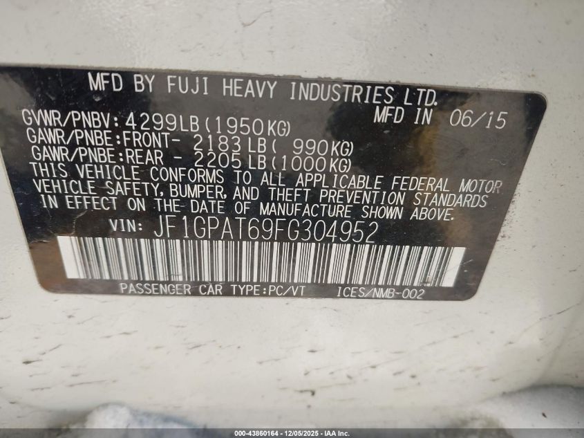 2015 SUBARU IMPREZA 2015 року Бензин, 2.0, Полный привод, vin - JF1GPAT69FG304952 из США