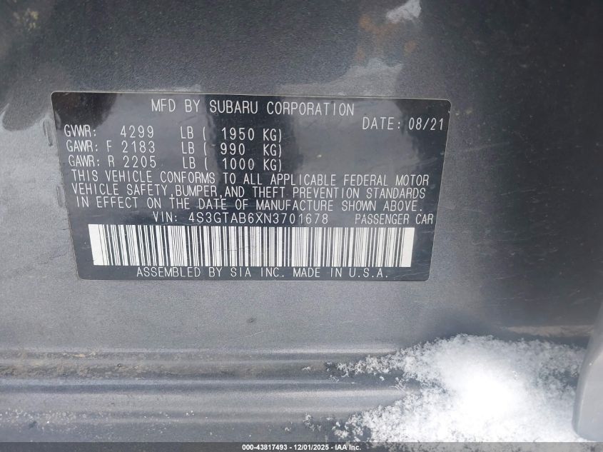 2022 SUBARU IMPREZA 2022 року Бензин, 2.0, Полный привод, vin - 4S3GTAB6XN3701678 из США