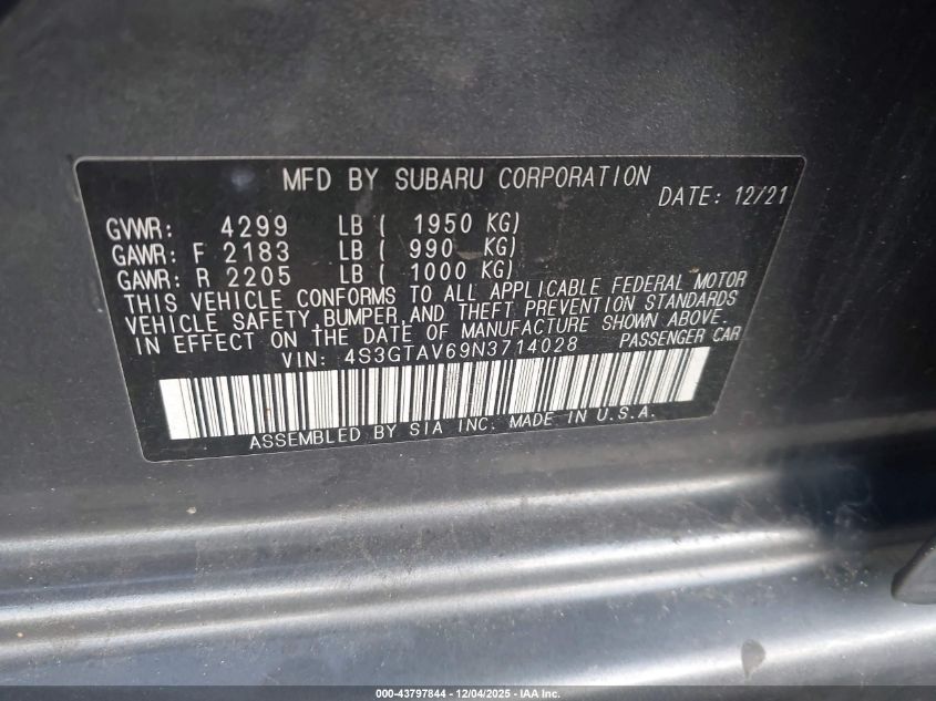 2022 SUBARU IMPREZA 2022 року Бензин, 2.0, Полный привод, vin - 4S3GTAV69N3714028 из США
