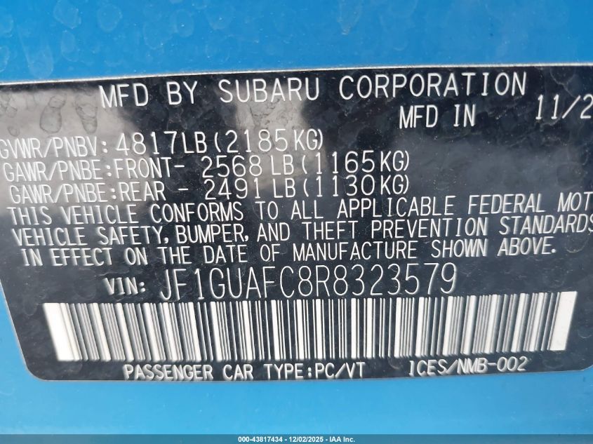 2024 SUBARU IMPREZA 2024 року Бензин, 2.0, Полный привод, vin - JF1GUAFC8R8323579 из США