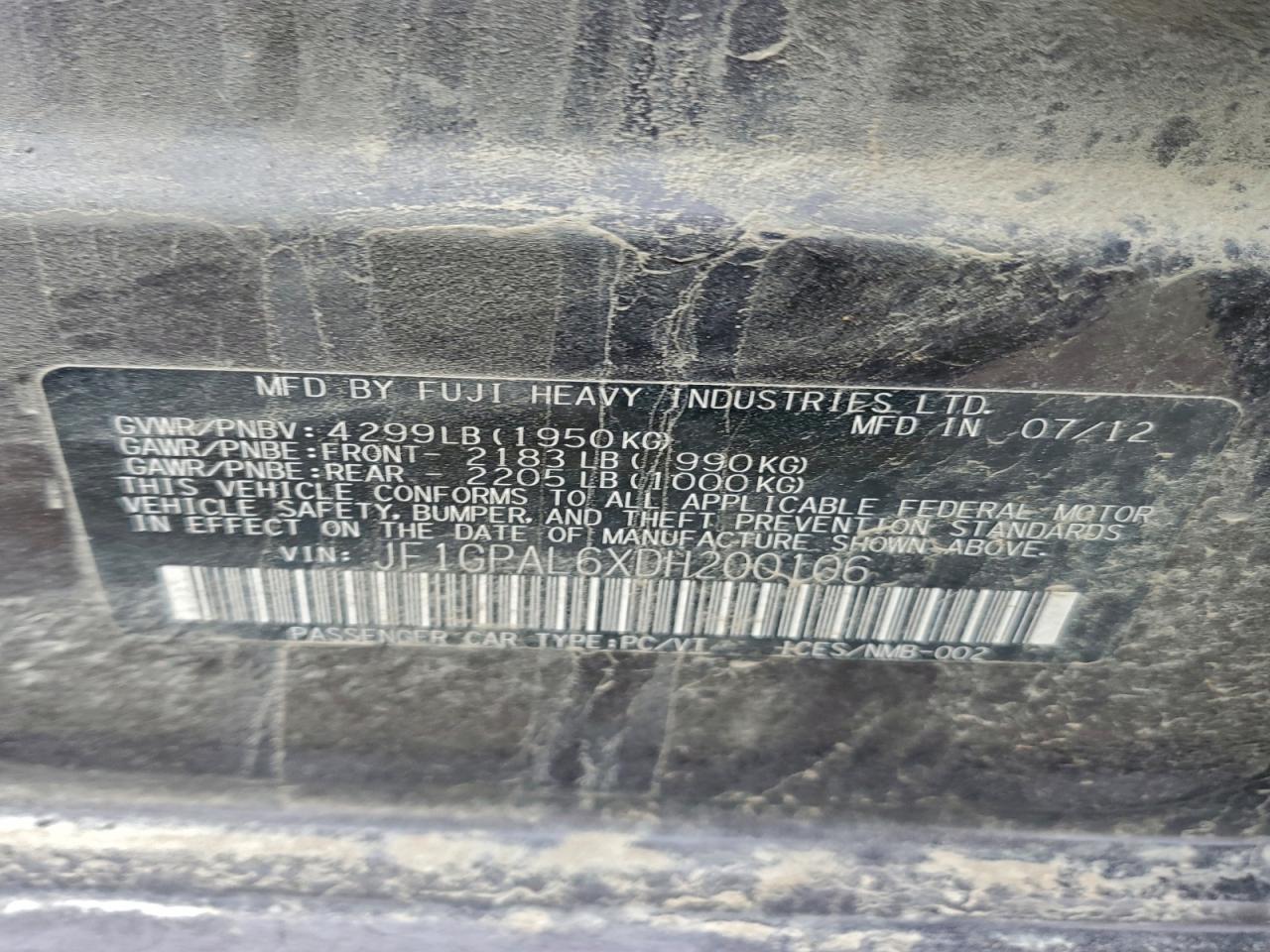 2013 SUBARU IMPREZA 2013 року Бензин, 2.0, Полный привод, vin - JF1GPAL6XDH200106 из США