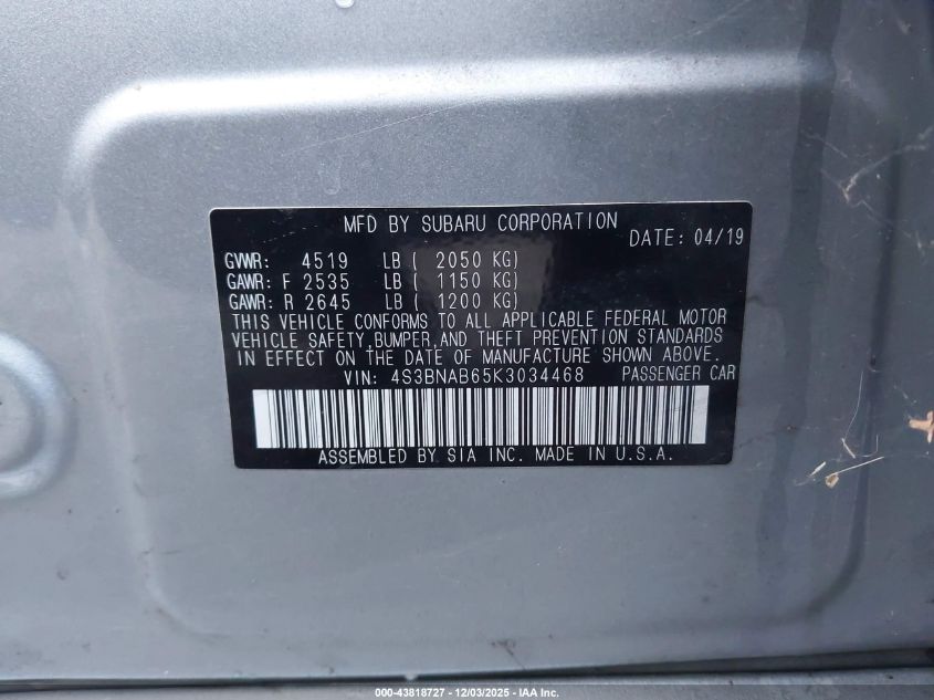 2019 SUBARU LEGACY 2.5I PREMIUM