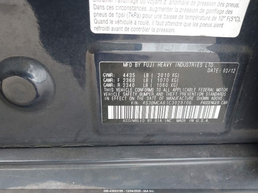 2012 SUBARU LEGACY 2012 року Бензин, 2.5, Полный привод, vin - 4S3BMCA61C3029706 из США