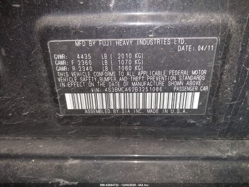 2011 SUBARU LEGACY 2011 року Бензин, 2.5, Полный привод, vin - 4S3BMCA62B3251086 из США