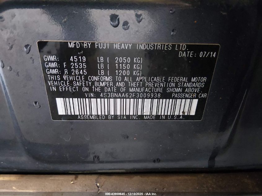 2015 SUBARU LEGACY 2015 року Бензин, 2.5, Полный привод, vin - 4S3BNAA62F3009938 из США