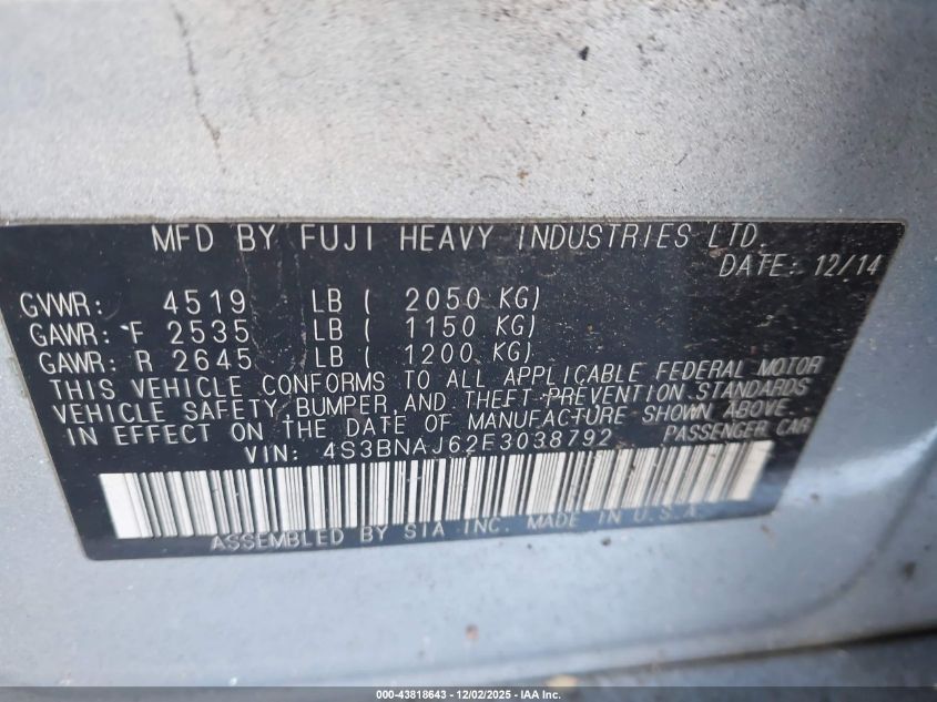 2015 SUBARU LEGACY 2.5I PREMIUM