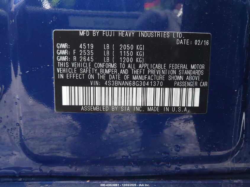 2016 SUBARU LEGACY 2016 року Бензин, 2.5, Полный привод, vin - 4S3BNAN68G3041370 из США