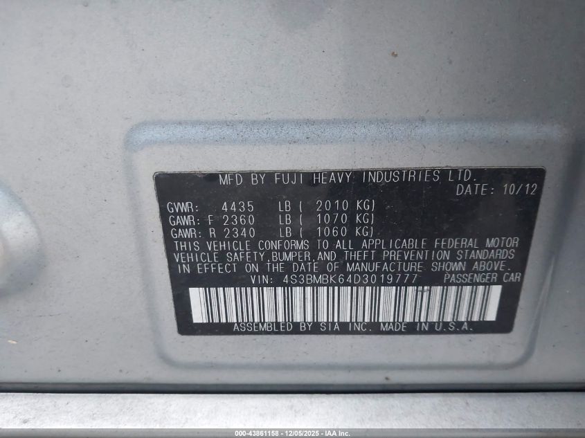 Цвет СеребряныйЦилиндры 4Привод Полный приводVIN 4S3BMBK64D3019777Состояние СтационарноПовреждения Передняя или задняя AutoRIA