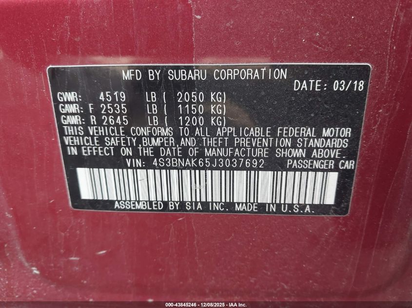 2018 SUBARU LEGACY 2.5I LIMITED
