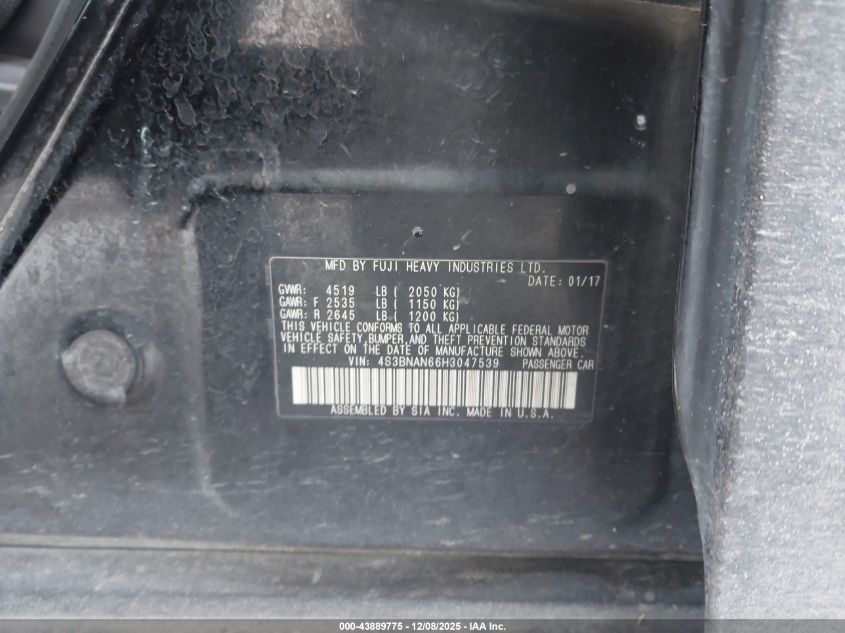 2017 SUBARU LEGACY 2017 року Бензин, 2.5, Полный привод, vin - 4S3BNAN66H3047539 из США
