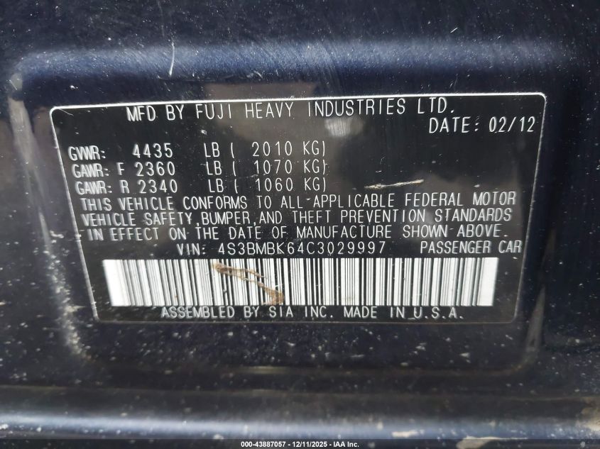 2012 SUBARU LEGACY 2.5I PREMIUM
