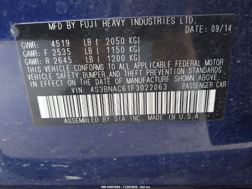 2015 SUBARU LEGACY 2.5I PREMIUM