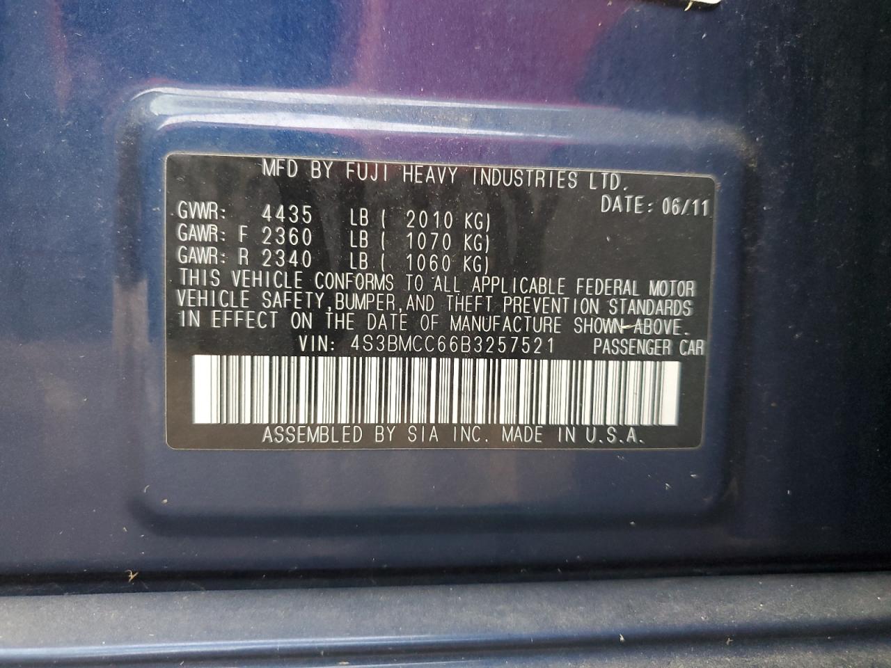 2011 SUBARU LEGACY 2011 року Бензин, 2.5, Полный привод, vin - 4S3BMCC66B3257521 из США