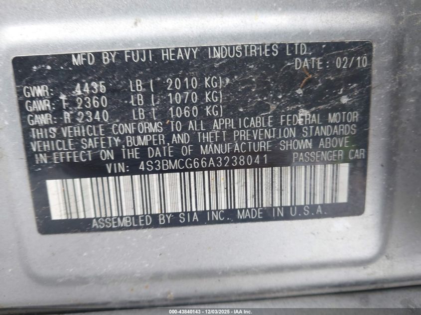 2010 SUBARU LEGACY 2.5I