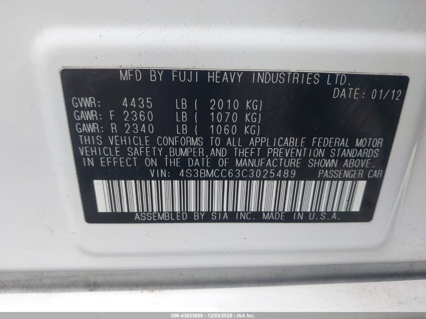 2012 SUBARU LEGACY 2012 року Бензин, 2.5, Полный привод, vin - 4S3BMCC63C3025489 из США