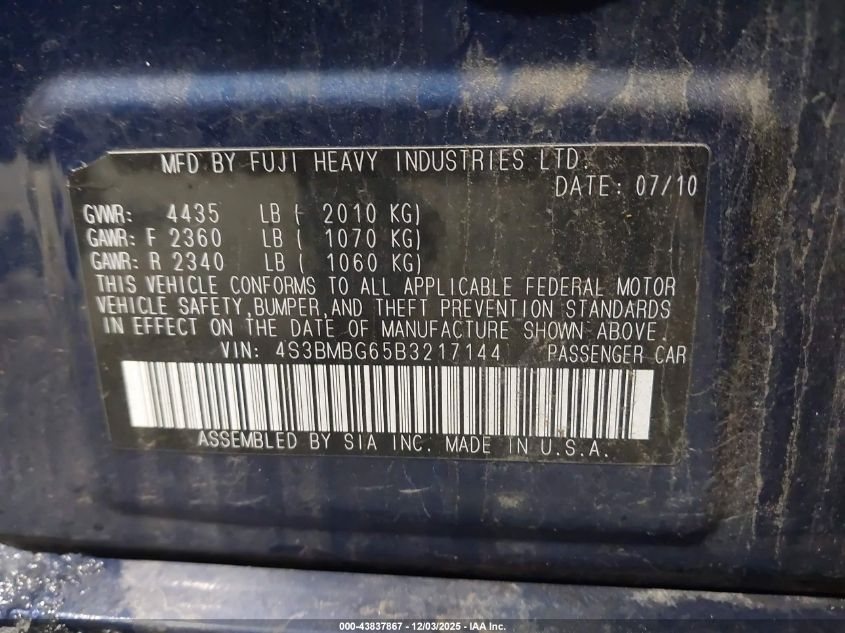 2011 SUBARU LEGACY 2011 року Бензин, 2.5, Полный привод, vin - 4S3BMBG65B3217144 из США