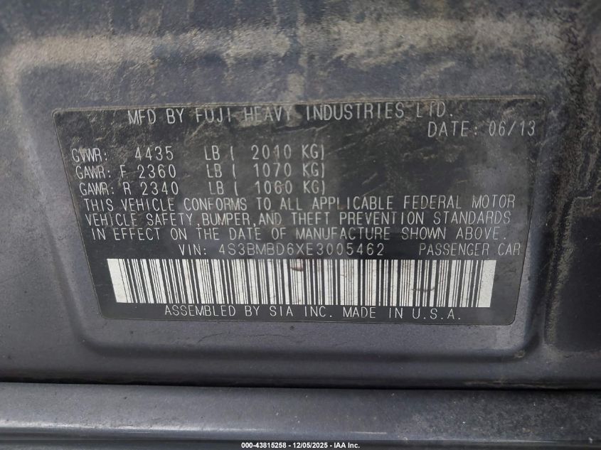 2014 SUBARU LEGACY 2.5I PREMIUM