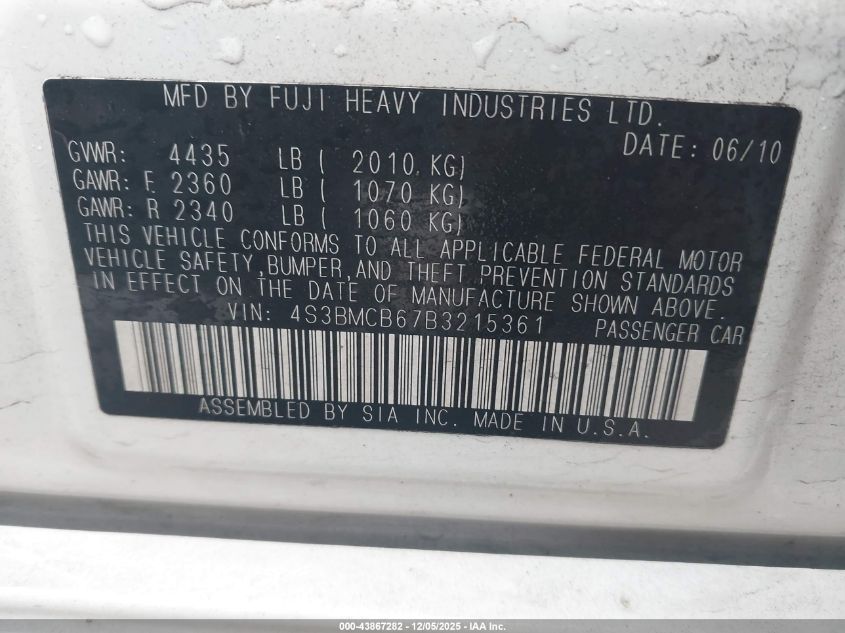 2011 SUBARU LEGACY 2011 року Бензин, 2.5, Полный привод, vin - 4S3BMCB67B3215361 из США