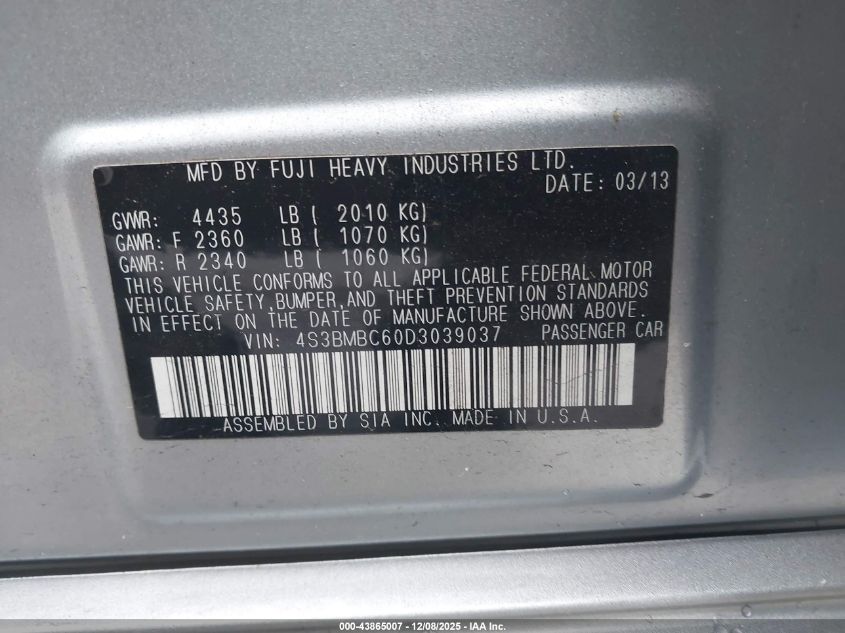 2013 SUBARU LEGACY 2013 року Бензин, 2.5, Полный привод, vin - 4S3BMBC60D3039037 из США