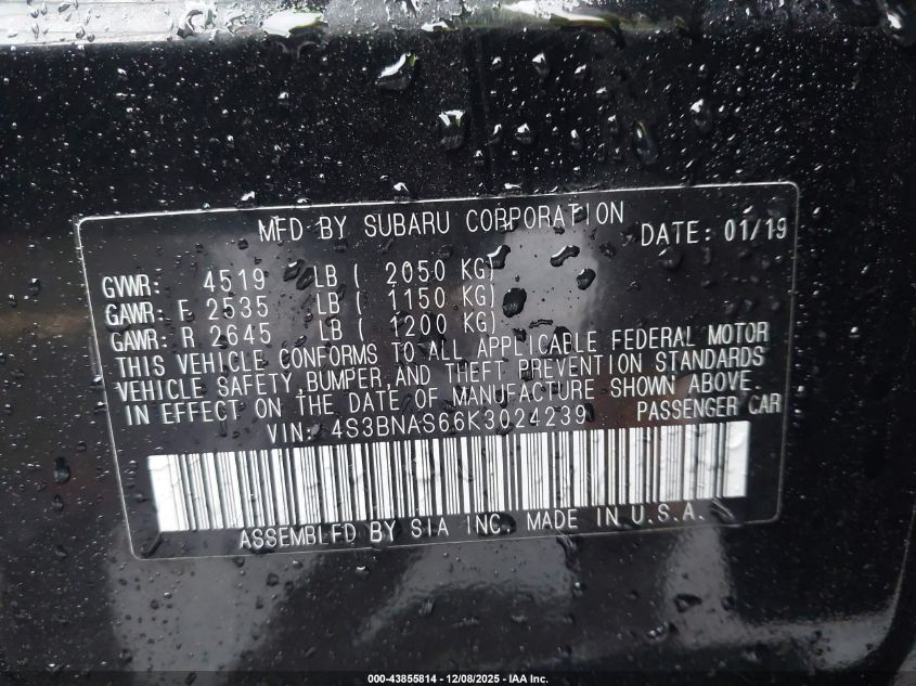 2019 SUBARU LEGACY 2.5I PREMIUM