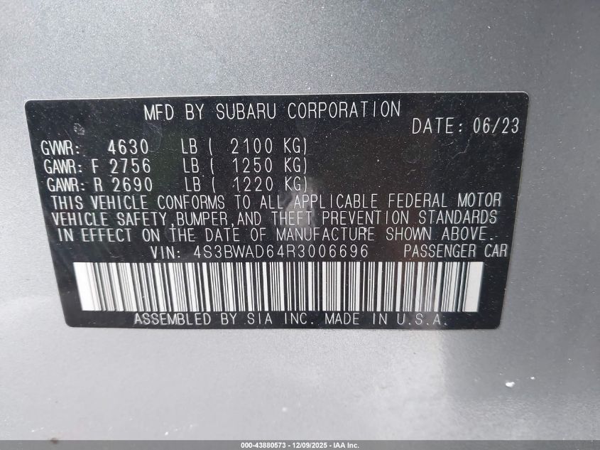 2024 SUBARU LEGACY 2024 року Бензин, 2.5, Полный привод, vin - 4S3BWAD64R3006696 из США
