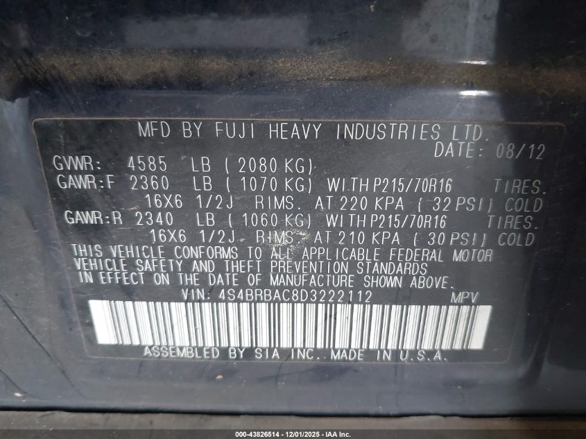 Цвет СинийЦилиндры 4Привод Полный приводVIN 4S4BRBAC8D3222112Состояние Заводится и едет (проверено)Повреждения Передняя или задняя AutoRIA