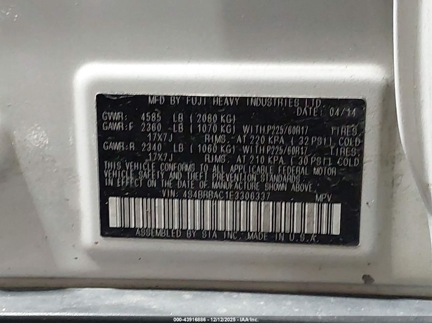 2014 SUBARU OUTBACK 2.5I LIMITED