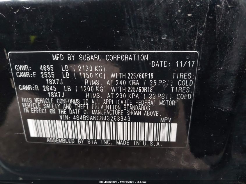 2018 SUBARU OUTBACK 3.6R LIMITED