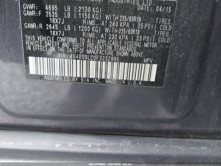2015 SUBARU OUTBACK 3.6R LIMITED