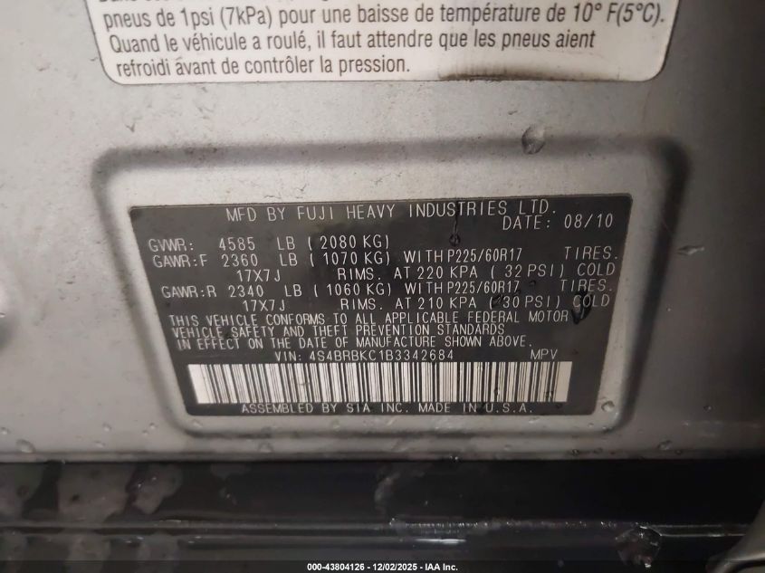 2011 SUBARU OUTBACK 2.5I LIMITED