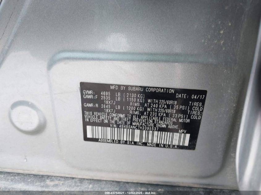 2017 SUBARU OUTBACK 2017 року Бензин, 2.5, Полный привод, vin - 4S4BSANC7H3395537 из США