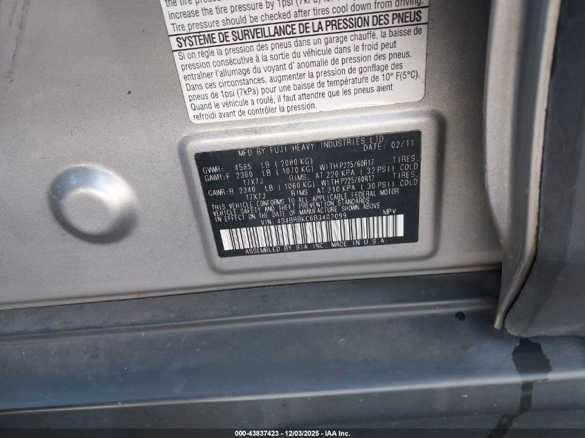 2011 SUBARU OUTBACK 2.5I LIMITED