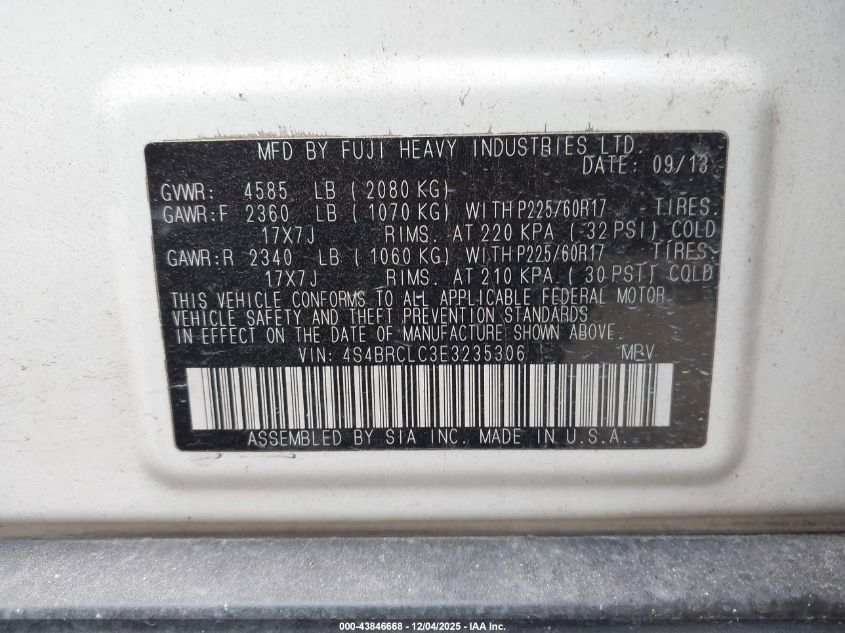 Цвет БелыйЦилиндры 4Привод Полный приводVIN 4S4BRCLC3E3235306Состояние Заводится и едет (проверено)Повреждения Обычный износДата аукциона 2025-12-11 AutoRIA