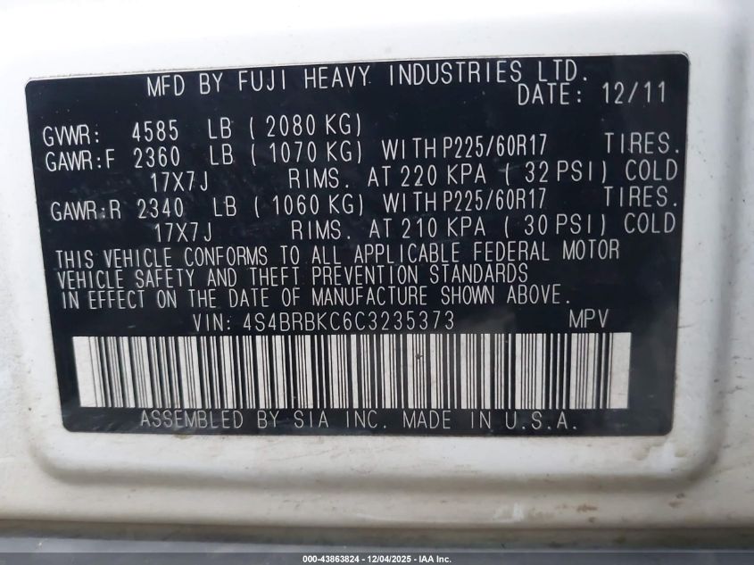 Цвет БелыйЦилиндры 4Привод Полный приводVIN 4S4BRBKC6C3235373Состояние Заводится и едет (проверено)Повреждения Передняя праваяДата аукциона 2025-12-15 AutoRIA