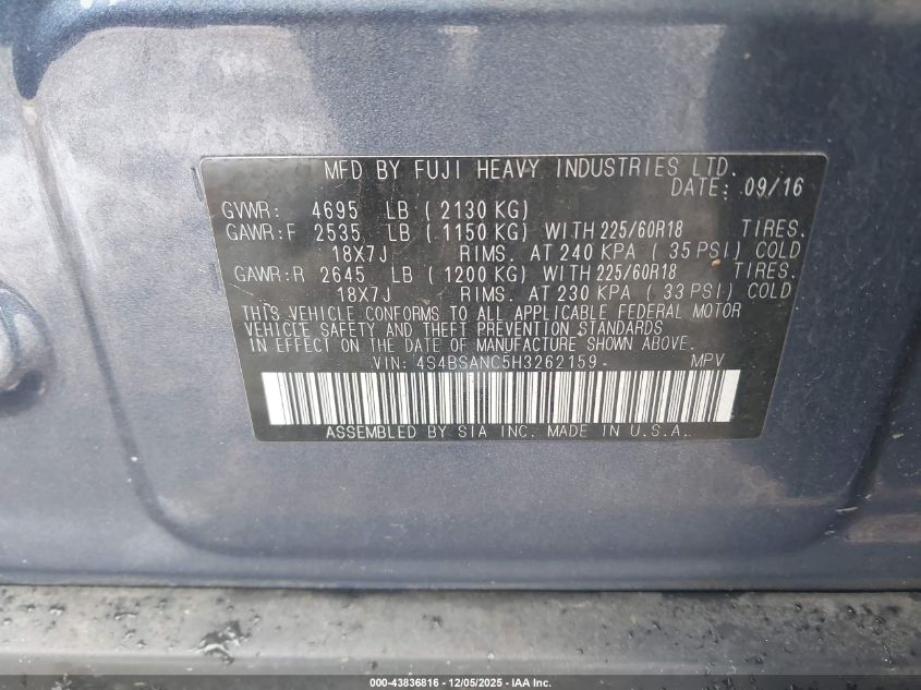2017 SUBARU OUTBACK 2017 року Бензин, 2.5, Полный привод, vin - 4S4BSANC5H3262159 из США